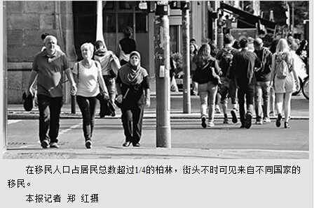 根据经济合作与发展组织的研究报告,德国已经成为全球第二大移民目的地。在柏林,有移民背景的居民人数已超过居民总数的1/4。如何维护社会公平、避免社会分化,成为政府需要正视的问题。2006年,柏林州政府发起了“柏林需要你!”项目,为具有移民背景的年轻人提供公共服务领域和公有企业的职业培训岗位,不少人因此获得工作机会,让自己的人生更加出彩。