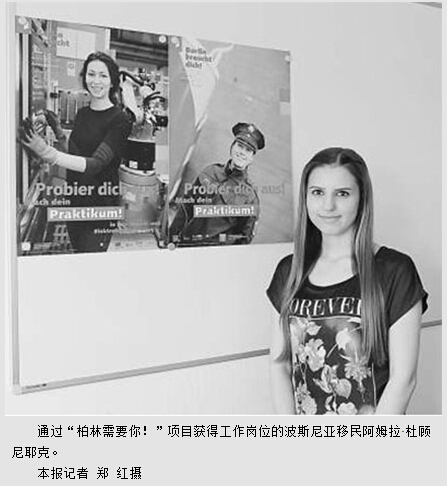 “柏林需要你!”项目负责人克劳斯·科尔迈尔对本报记者说,这个项目创建于2006年,主要是在学校与企业之间架起桥梁,致力于改变长期以来移民及其子女缺乏社会资源和进入劳动力市场渠道不畅的局面,其目标就是将柏林公共服务领域和公有企业的职业培训岗位中有移民背景青年人的比例提高到25%,使之与有移民背景的人占柏林总人口的比例相称。