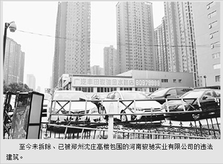 我们本以为此令可以制止骏驰公司的违法行为,谁知有关部门相互推诿,处罚令并未得到执行。为此,郑州市委主要领导曾批示督办,但至今郑州市规划局下达“限3日内自行拆除,逾期强制执行”的处罚决定已有1年半时间,骏驰公司的违法建筑依然如故。