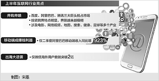 上半年,中国互联网公司一系列让人眼花缭乱的动作,将这股投资并购热潮推向了一个新的高峰。“如果说2013年是互联网行业的并购元年,那2014年就是井喷年。”互联网数据中心(DCCI)互联网研究院院长刘兴亮感慨。