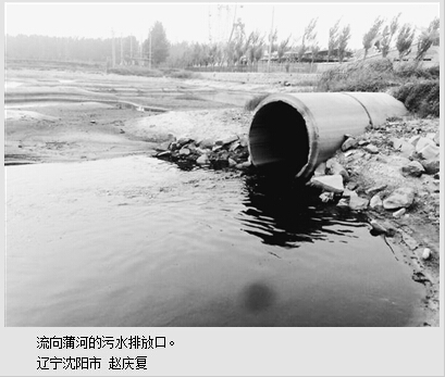 “辽宁辽中县蒲河游乐场后面的大排水管向蒲河里面排放大量黑水,本来现在蒲河就旱了,还向里面排放污水,土壤不就有毒了吗?”