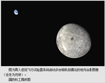 28日,再入返回飞行试验器进入月地转移轨道,发回清晰的地月合影