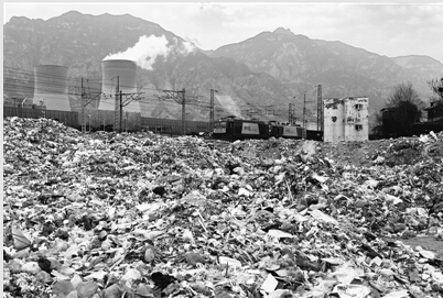 3月11日,笔者在河南省济源市郊看到,煤运通道侯月线K31+400米(济源市沁北电厂)附近,建筑、生活垃圾堆放在铁道两旁。