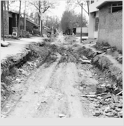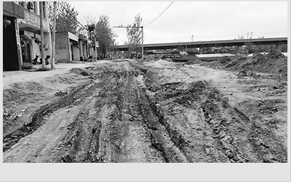 我县有条从县城通往黄河最大支流渭河的防汛公路,从我家门口经过。2014年5月,县城建局开始对该公路进行局部2公里左右的修缮开挖。工程修修停停,至今未完工。工程现场黄土裸露,没有任何防尘措施,晴天尘土飞扬,雨天泥泞不堪(如图)。
