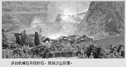 5月15日,在山西永济市城东办南郭沟中条山天然林保护区,笔者看到,多台机械在开挖砂石,机器的轰鸣过后,沙尘弥漫,被乱挖滥采的荒沟和周围密布的天然林形成反差。令人不解的是,国土部门居然给砂石厂办了合法手续,为其损毁天然林大开方便之门。