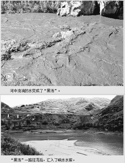 近日,笔者和几个同事到贵州盘县响水镇办事,当我们的车辆进入与响水镇毗邻的乐民镇入口处时,清澈见底的乐响河映入眼帘。正当我们为看见清澈的河流而感到开心惬意时,车上一名同事突然惊呼起来:“快看,河水变黑了!”透过车窗看去,5分钟前还淙淙流淌的清水河不见了,取而代之的是浑如黑汤的河水,咆哮着向前流去。越往前走,河水越变得漆黑不堪。