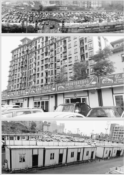 我们是四川省泸州市龙马潭区迎宾大道香格里拉小区住户。2015年7月,龙马潭新申二手车市场管理有限公司老板在我们小区前面22亩工业用地性质的空坝上,违规建了一个二手车交易市场(见图①),可停放600多辆车。该市场在没取得商务部门许可、没报城建审批且未经消防部门验收的情况下,于2015年10月初在国庆假期几天内匆忙建起了88间近2000平方米的易燃彩钢泡沫板房办公室(见图②、图③)后,就擅自开展经营活动,而板房里面的经营者为图方便乱拉电线,甚至在板房里面烧水做饭取暖。