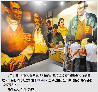 在焦裕禄陵园,离墓地不远处的纪念馆里,人们排起长队参观焦裕禄事迹展。展柜里,摆放着焦裕禄生前用过的物品,从生锈的锄头到带着窟窿的布鞋,还有打了42个补丁的被子。