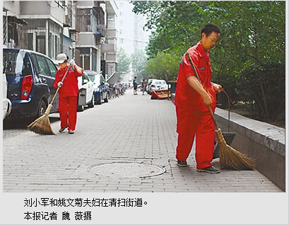 1999年,刘小军离开老家四川广安岳池县来到北京,在东花市街道当上了环卫工人。3年后,妻子姚文菊带着儿子来京,也做了环卫工。