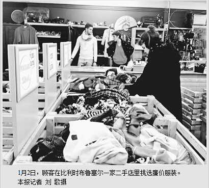八成新的天柏蓝男士衬衫,标价仅7.5欧元,半新的英格兰纯羊毛手工制作毛毡帽,70欧分就卖……此外还有各种标价1—2欧元的牛仔裤、名牌鞋、床上用品、自行车,都以低廉的价格出售,而这些当作二手货、旧货出售的商品,原价都是现在标价的10倍,甚至20倍。在位于比利时鲁汶市一家名为昆鲁朴万克循环回收商店里,新年伊始,顾客盈门。
