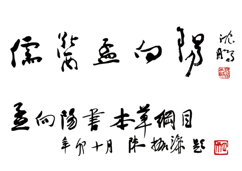 每当我捧着这部洋洋洒洒超过二百万言的宏篇巨著,徜徉在中医药知识海洋之中的时候,总有一种被感化之后的强烈愿望,曾暗自决心,发誓要把中医与书法这两大国粹有机结合,让《本草纲目》进入书法艺术领域,让有幸目覩者在学习中医药知识的过程中欣赏书法艺术,在艺术享受中得到健康养生的中医药知识!所以,我决定把《本草纲目》创作成书法艺术!