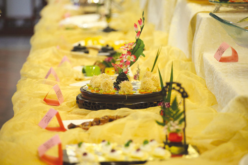 7月31日下午,一场别开生面的厨师技能展评大赛在瘦西湖景区万花园餐饮服务中心举行。此次比赛以实操演练的方法,选手们分为“甲”、“乙”两队,分别以“八道冷盘,十二道热菜,两道点心”为展台主体结构进行展示比拼。