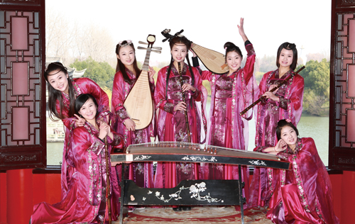 登熙春台,笙箫管笛声余音绕梁,身着传统服装的端庄少女,抚琴弄弦,如痴如醉地演奏着《茉莉花》,吹箫的少女,静若处子,温婉雅致,让人很容易想起陈逸飞一幅描写江南吹箫少女的油画《浔阳遗韵》——这就是瘦西湖畔的“女子箫筝乐队”。