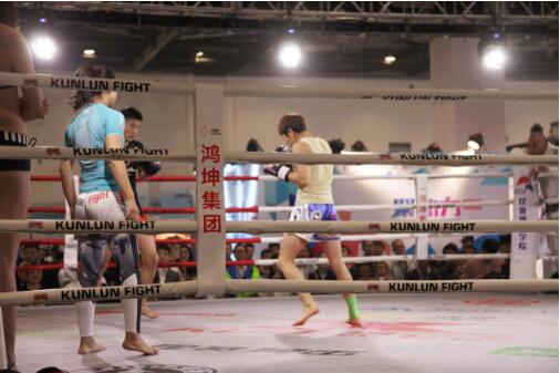 昆仑决位于互动体验展区,展区内搭建7×7米的擂台,昆仑决邀请到中国女子综合格斗第一人唐金坐镇。
