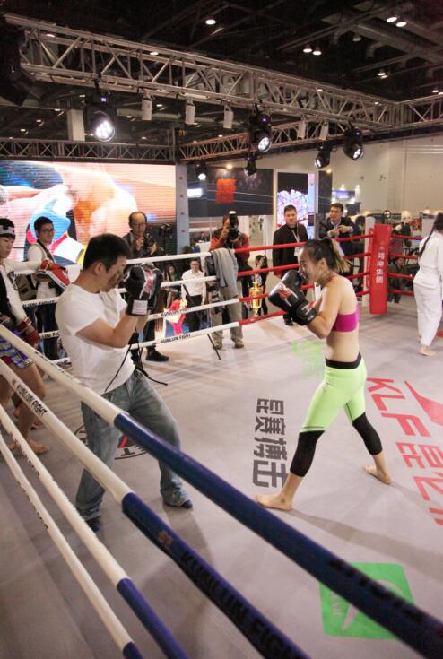 10月19日,2016国际冬季运动博览会在北京国家会议中心举行。作为受邀参展商,昆仑决以“助力2022,搏击未来”为主题,精心搭建了150平米的展区,进行了现场格斗表演与教学互动,展示了最新、最炫酷的搏击装备和VR格斗游戏,吸引大量观众驻足,场面异常火爆,成为冬博会首日的一大亮点。