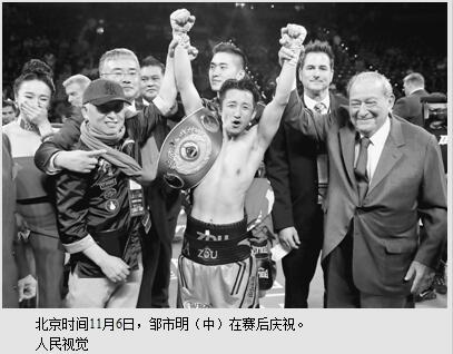 “今天的比赛对得起我的付出。”邹市明说。在成为职业拳王之后,邹市明表示希望为中国推广职业拳击做出更多贡献。但至少在今天,先让他享受属于自己的“拳王时刻”。