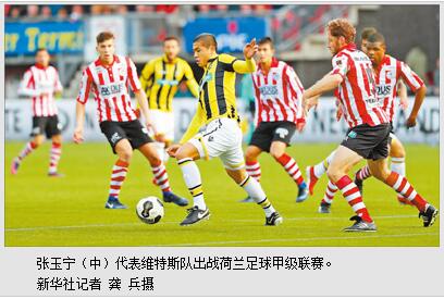 张玉宁在维特斯队闯出了一番天地,第四次替补出场,就在极其有限的时间里为球队带来进球。此后,不时有张玉宁进球的消息从荷兰传来,这也自然引起了国内俱乐部的关注。有一次,张玉宁正在俱乐部餐厅吃饭,俱乐部总监在他毫无思想准备的情况下,突然来问:“你觉得回去踢中超怎么样?”张玉宁不假思索地回道:“至少五六年之内,我是不会回中超去踢球的。”总监没有再多说什么。