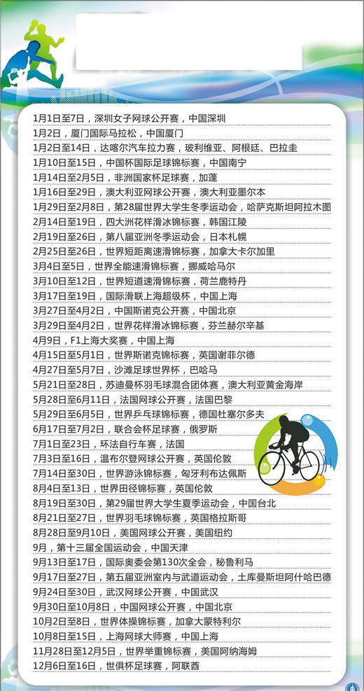 2017年国内外重要体育赛事一览