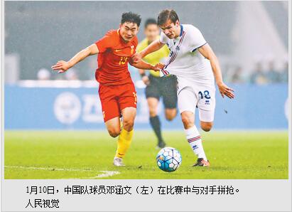 在去年夏天进行的欧洲杯比赛中,英格兰队、葡萄牙队等世界足坛豪强面对冰岛队时吃尽苦头,在场面占据主动的情况下,却被后者抓住仅有的一两次反击机会而一击致命。1月10日,在广西南宁的绵绵细雨中,中国男足也体会到了那些强队的感觉。当晚的首届中国杯足球赛的揭幕战,中国队在广西体育中心体育场以0∶2不敌冰岛队。14日下午,中国队将在本届中国杯的三、四名决赛中对阵克罗地亚队与智利队的负者。