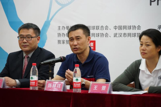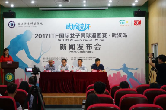 人民日报海外版欧洲网讯 2017ITF国际女子网球巡回赛(武汉站)开战在即,19日,赛事承办方武汉城市职业学院在该校网球学院报告厅举行新闻发布会。出席发布会的有WTA亚太区副总裁、金牌裁判长陈述,武汉市体育局副局长陈林祥,武汉体育发展投资有限公司董事长、武汉网球公开赛赛事总监朱建斌,武汉城市职业学院党委书记李海燕,武汉城市职业学院党委委员、副校长、学校体育运动委员会主任刘晓天,武汉城市职业学院党委委员、副校长段永发。