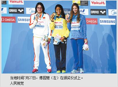 这是傅园慧在本届世锦赛参加的第二个比赛项目,在当地时间25日进行的女子100米仰泳比赛中,傅园慧在半决赛发挥失常,仅排名第十三位无缘决赛。