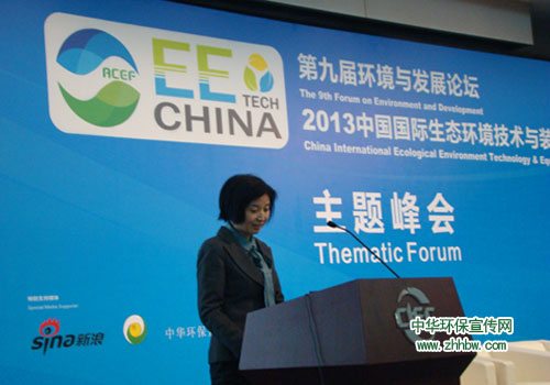 图为国家林业局造林绿化管理司副司长吴秀丽在现场演讲中华环保宣传网 李观印 摄