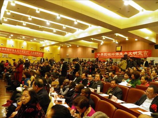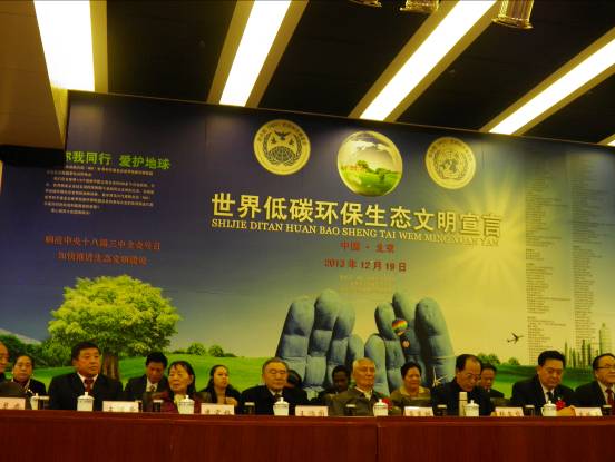 12月19日下午二点;世界低碳环保生态文明宣言在国务院老干部局隆重召开,此次新闻发布会是由联合国世界和平基金会,世界低碳好环保联盟总会,联合国华盟世界低碳环保总会主办的;到会的领导有全国人大环境委员会副主任张文台,国务院首批稽查特派员;刘吉;原国家侨联主席;庄炎林;各大部委领导近百人,各行届精英及新闻媒体记者,五百人之多。