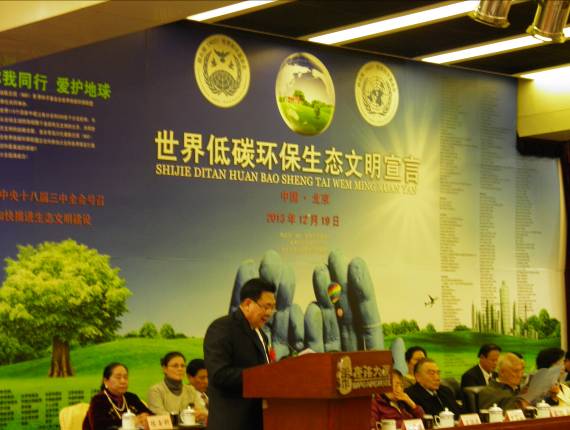 大会执行主席李隆基宣读了长达30分种的《世界低碳环保生态文明宣言》(宣言)由三个部分组成,一;全面阐述了100多年来从工业文明到科技文明发展,全球生态的变化到近年来的生态危机,二;面对重重污染人类如何决择,三;呼吁世界各国政府在制定经济发展规划应把生态环保规划放在首位;呼吁地球上的每一公民,增强生态环保意识和低碳环保的自律性;会上,世界低碳环保联盟总会主席张文台,刘吉,国际友人,中外企业家等均在会议上做了热情洋溢发言和演讲。会议的精神:生态环保从个体做起,低碳环保,人人有责! (记者李丹)