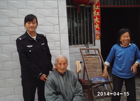 4月15日,慈音寺派出所民警得知辖区中脊村1社,年满93岁的老大爷蒲丰春,因患多种疾病,行走困难,生活不能自理。其老伴冉素芳已满88岁,身体较差,行动也不方便。两位老人未办理第二代身份证,无法办理医保卡到社区居委会领取养老生活补助费。所长王传电,副所长古敏红,立即带领户籍民警孙是、古婷赶到蒲丰春家问寒问暖,帮助老人打扫卫生,整理衣着,为蒲老拍摄身份证像,免费为老人办理身份证。