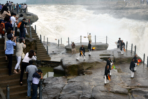 奔腾的黄河汹涌而来,汇聚在壶口瀑布发出气势雄浑的怒吼。6月14日,在黄河壶口岸边,来自西安演合星光太极健康协会的55人表演队,为壶口景区的游客上演了一场精彩绝伦的太极表演。县领导王长江、薛根堂、李江龙、赵晓鹏出席活动。