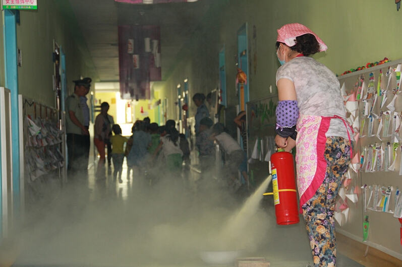 宣传过程中,大队派出宣传经验丰富的官兵来到辖区学校,针对学生的特点,以火灾案例穿插的讲解方式,深入浅出地讲解了消防基础知识、灭火常识、防火常识、灭火器的使用方法、火场自救、报警、疏散逃生等消防知识。为了使师生能更加自如的将学到的理论知识运用到实际生活中,宣传人员又趁热打铁,对师生进行了灭火演练和应急疏散演习,灾情假设教学楼2楼起火,产生大量的浓烟,浓烟满布,警铃响起,逼真的火场真实环境,让师生们紧绷神经,亲身体验了一把“火场逃生”。演习过程中,学生在老师的组织下,迅速有序地从教学楼疏散楼梯疏散至安全地带。