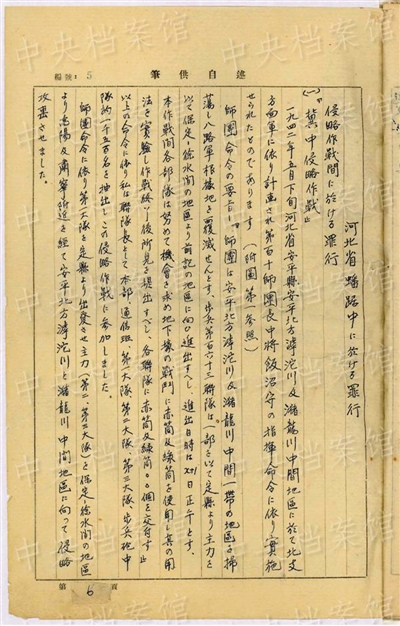 中央档案馆7月5日公布了日本战犯上坂胜的侵华罪行自供提要。