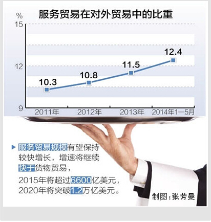 服务贸易占外贸比重持续攀升,跃居全球第三