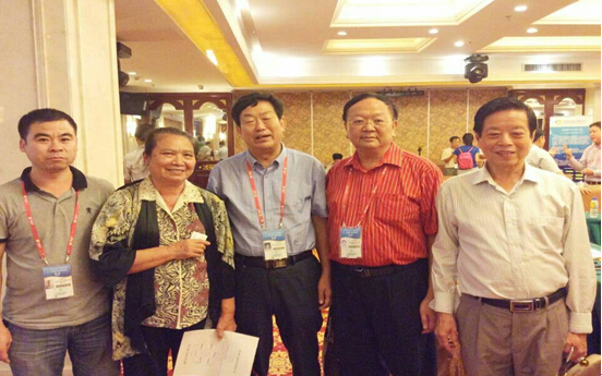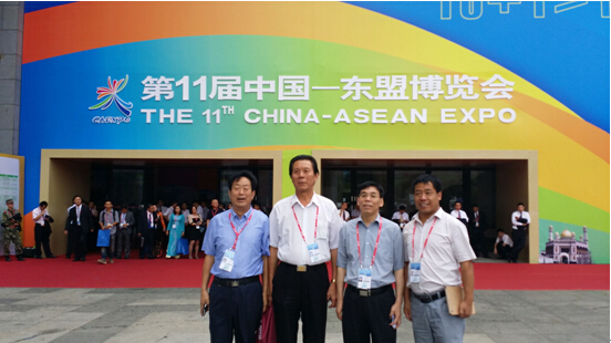 农业部农村经济研究中心主任宋洪远(左2)、中国三农产业工作委员会主任万云华(右2)、农农(北京)生物科技有限公司董事长李海民、总经理李铁成出席东盟博览会合影
