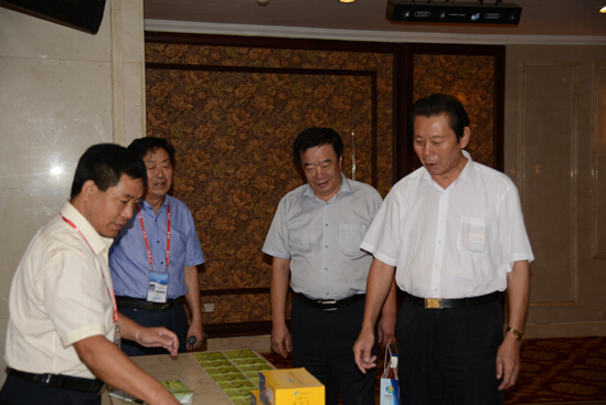 中国循环经济协会副秘书长侯建生等参会领导参观“农三多”产品后赞不绝口