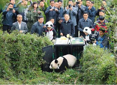 针对大熊猫小种群遗传衰退的威胁,2003年,国家林业局正式启动了圈养大熊猫野化培训放归项目,并于2006年4月首次将经过野化培训的人工繁育大熊猫“祥祥”放归野外。在总结前期经验的基础上,2010年又启动了二期野化培训项目,并于2012年10月和2013年11月分别将“淘淘”和“张想”放归野外。