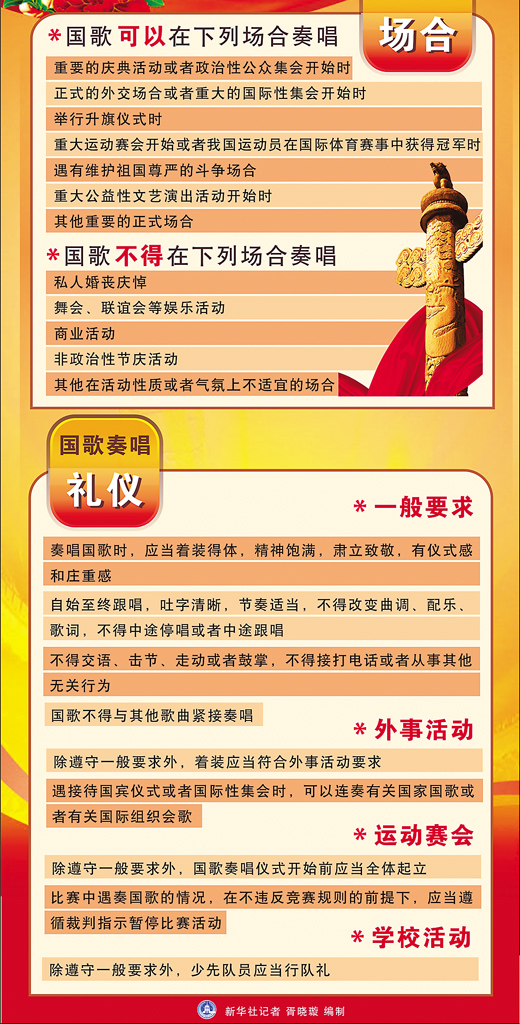 《关于规范国歌奏唱礼仪的实施意见》