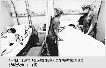 上海市第一人民医院目前共有留院病人12人,其中轻伤员9人,重伤员3人。该院副院长夏求阶表示,3名重伤员中有2人病情危重,仍然在使用辅助呼吸,其中一例病人特别危重,经医院专家积极抢救及上海有关专家紧急会诊,在1日和2日凌晨已实施人工辅助心肺治疗,生命体征仍不稳定,目前仍在积极的抢救当中。