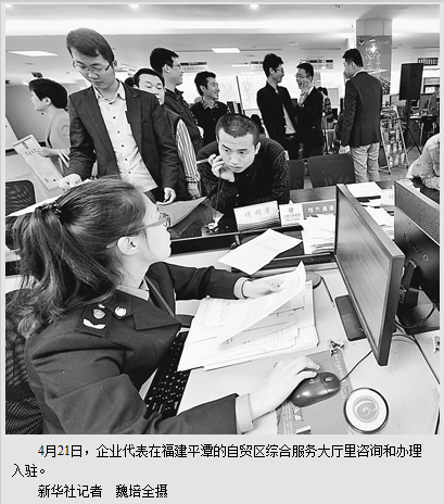 本报北京4月21日电 21日上午10时,中国(广东)自由贸易试验区、中国(天津)自由贸易试验区、中国(福建)自由贸易试验区同步挂牌,标志着我国自贸区建设正式迎来“2.0”时代。加上上海,我国由南到北四大自贸区“连点成线”,勾画出改革开放、创新发展的新格局。