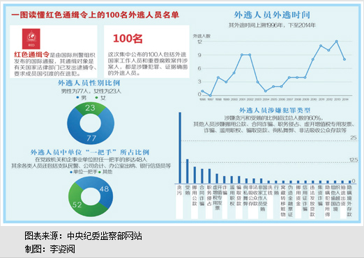 国际刑警组织中国国家中心局十分重视同成员国执法机构的合作,多次通过国际刑警组织发布红色通缉令。这次集中公布的100人包括外逃国家工作人员和重要腐败案件涉案人,都是涉嫌犯罪、证据确凿的外逃人员,已经由国际刑警组织发布红色通缉令,正在全球范围追捕。中方通过国际刑警等渠道提请有关国家执法机构加强合作,协助将有关嫌疑人缉拿归案,并表示这次公布的只是其中一部分,今后对于涉嫌犯罪的外逃人员,依然要发现一起、通缉一起。
