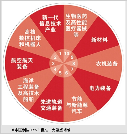 《中国制造2025》提出提高国家制造业创新能力、推进信息化与工业化深度融合、强化工业基础能力等9项战略任务和重点,并明确提出实施智能制造、工业强基、绿色制造、高端装备创新等5项重大工程。