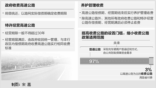两个公路体系中,收费收税将并行;高速公路实行“用路者付费”更显公平;收费公路设置门槛将大幅提高