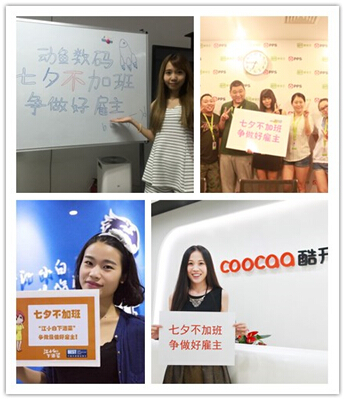 今天,是中国情人节 “七夕”佳节,但许多白领却纷纷陷入加班状态不能自拔;激烈的职场竞争让许多企业员工忽略自身生活。针对广大白领日渐升温的“不加班”呼吁,智联招聘联合爱奇艺、酷开、四季沐歌、壹枱钢琴等十余家企业发起“七夕不加班”倡议,号召企业“争做好雇主”。此消息一出即引起网友热议,纷纷表示:“这才是雇主界的良心!“。
