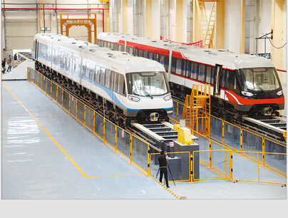 12月8日,由中国铁建铁四院设计施工总承包的湖南长沙中低速磁浮铁路工程全线疏散平台铺架完毕,将于近期开通试运行。据了解,长沙中低速磁浮铁路是中国首条自主研发的磁悬浮线,西起长沙南站,东至黄花机场,线路全长18.5公里,2014年5月开工建设。图为工程技术人员在长沙调试磁浮列车。