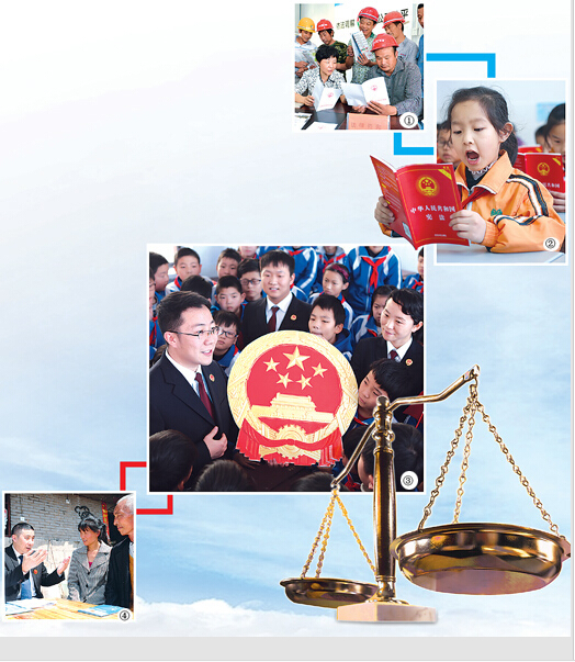 图②:山东淄博张店区铁路小学举行普及宪法活动。