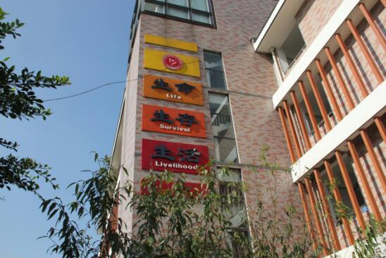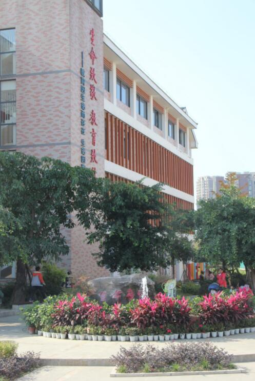 生命广场:游鱼、喷泉、鲜花、小草、绿树,以及地板上雕刻的国内外教育大家对生命教育的真知灼见,动静结合的设计,错落有致的安排,是学校的生命广场,也是一年级新生入学教育的第一课,他们会在这里感受生命,了解生命,发表自己的生命宣言。