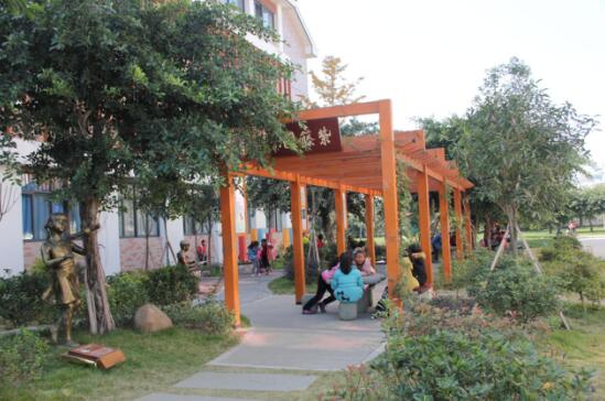 “艺术长廊”:“生活不仅要有油盐柴米酱醋茶,生活还要有琴棋书画诗酒花”。环境优雅的紫藤园,是孩子们开心的乐园,也是艺术的摇篮。琴、棋、书、画四座栩栩如生的雕塑,把艺术的种子无声的播进孩子的心田,让他们的心房填满这些高雅的情趣,让孩子们的生命底色更厚重,生命更丰满。