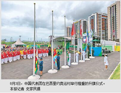 与以往庄严的升旗仪式不同,在桑巴的国度,轻松欢快的舞蹈伴随着升旗仪式始终,为中国运动员留下了深刻的印象。