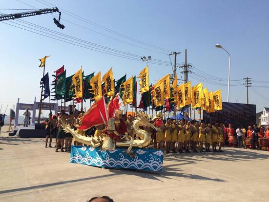 开捕祭祀仪式主要有请神、祭神、敬神、放生、悦神、送神等六个篇章。祭祀仪式开始,60位彪形大汉组成的仪仗队,断发、纹身,着旧时代的渔民服饰,手举一杆黄色月牙渔旗,呼唤口号,在两条金龙护卫开道下绕场一周,并进行了"画龙点睛",寓意太湖小镇光福在十三五开局之年,各项事业龙腾虎跃,奋勇向前。