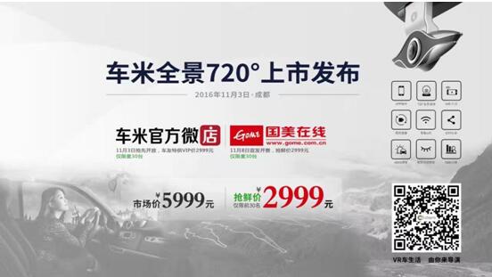 深圳市车米云图科技有限公司董事长姚学文在发布会现场宣布:车米全景720,11月3日正式发布,全国统一售价5999元,11月3日发布当天官方微店首先开放车友特供30台VIP价2999元(售完即止);11月8日,国美在线上架同步接受全国车友购买,前30名手快抢购到的车友们也有机会可以享受2999元的快手抢鲜价哦!